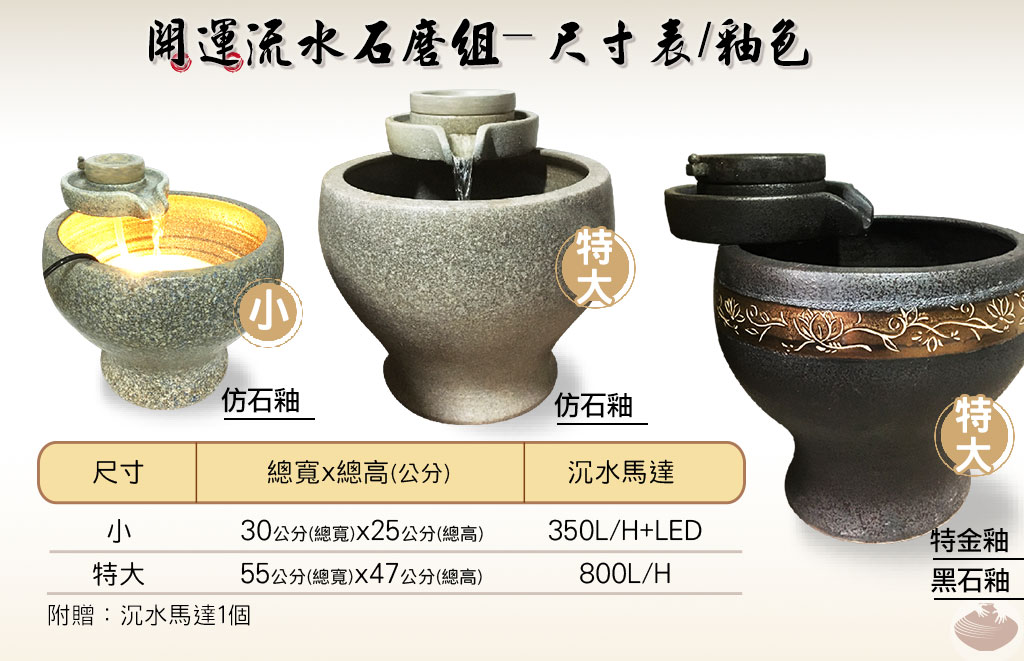 開運流水盆石磨組(附贈沉水馬達+LED燈)