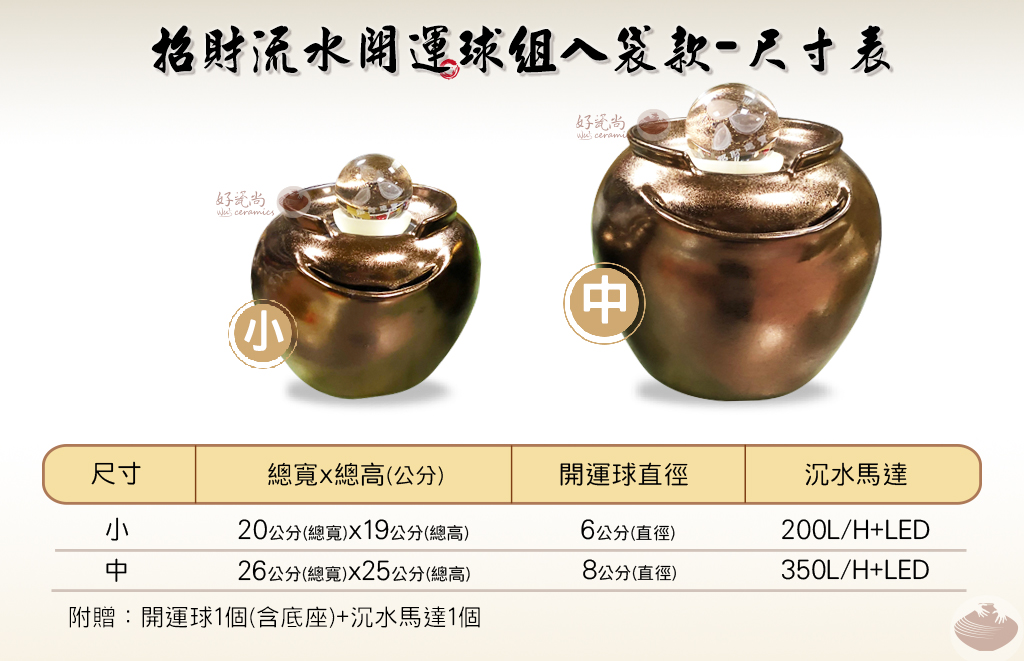 附贈內容/開運球1個、沉水馬達1個