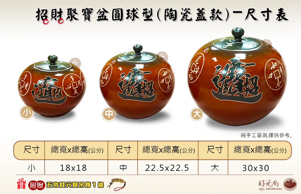 聚寶盆(陶瓷蓋款)-圓球型(財源滾滾)