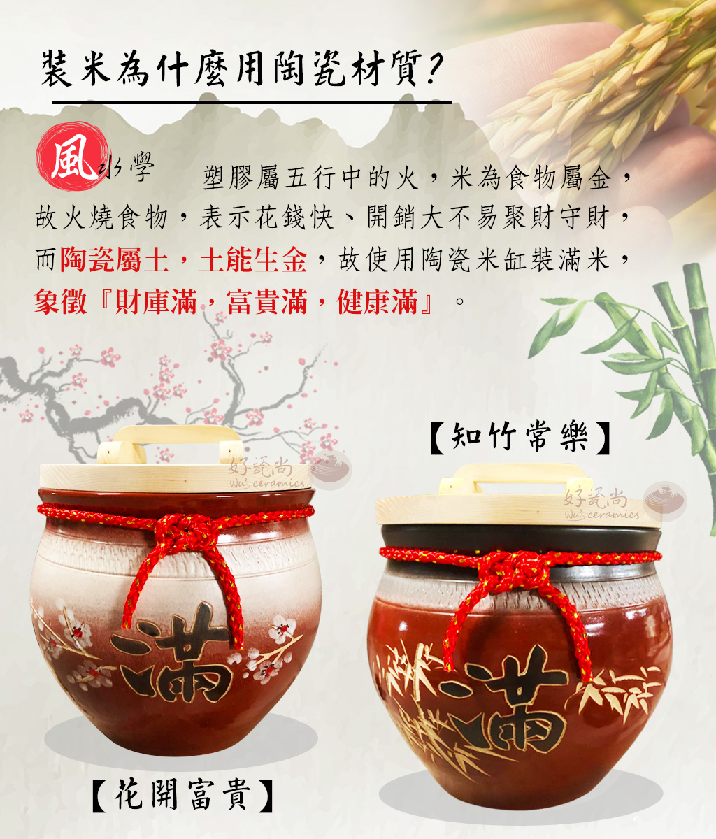 另外米甕也可當聚寶盆,內置放水晶、元寶、錢幣等象徵招財的物品。